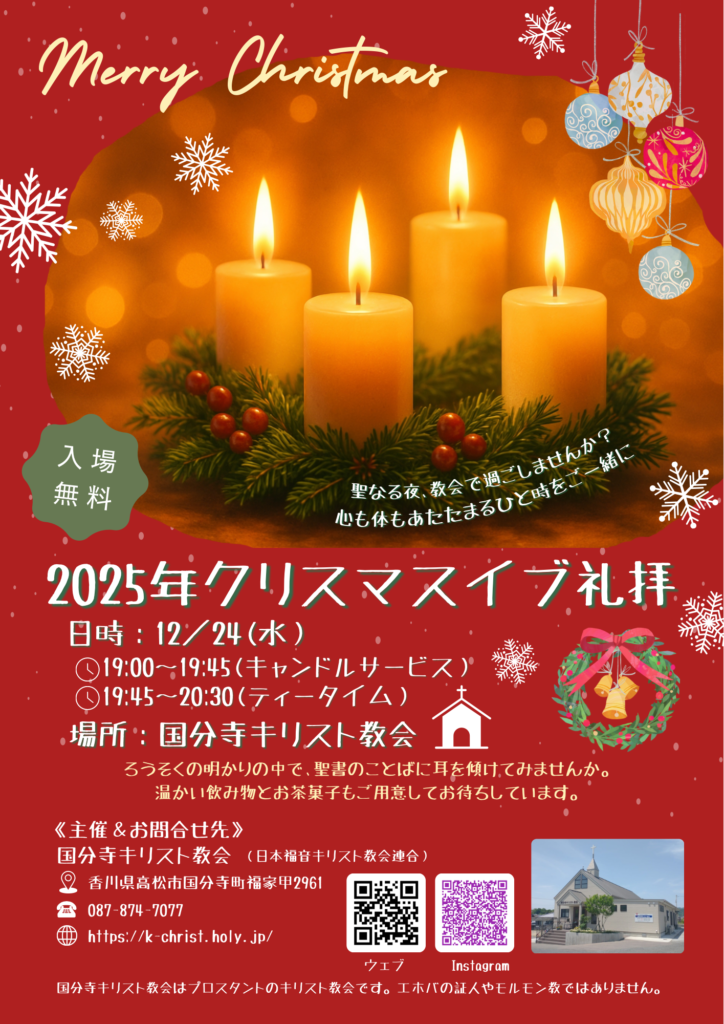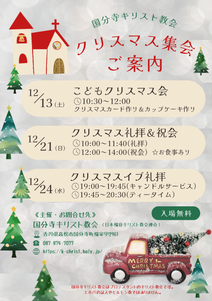 国分寺キリスト教会では12月にクリスマス諸集会を行います。