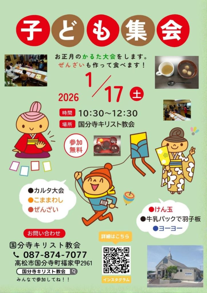 2026年1月の子ども集会・わくわくキッズクラブはお正月「かるた大会」と「ぜんざい」を食べます。